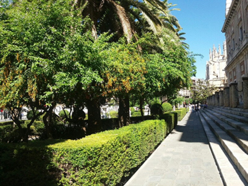 En los jardines del Archivo de Indias en la avenida de la Constitución, hay varios ejemplares.