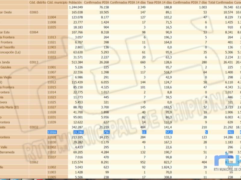 La tasa de incidencia en el distrito sanitario Jerez-Costa Noroeste casi no se modifica y se coloca 141,4, mientras que la provincial registra un aumento hasta 188,8.