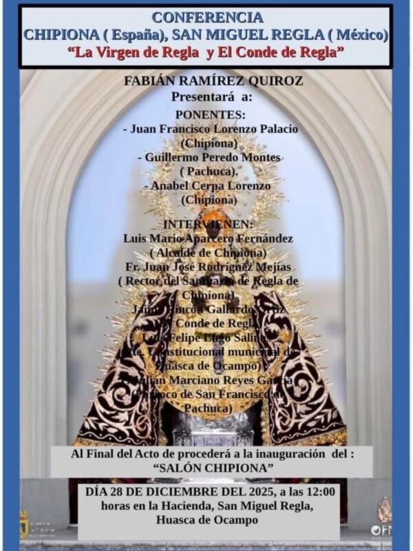 Conferencia en México para dar a conocer la historia de Chipiona y la Virgen de Regia y su influencia por todo el mundo a través de la Historia de D. Pedro Romero de Terreros, primer Conde de Regla, (1710-1752).