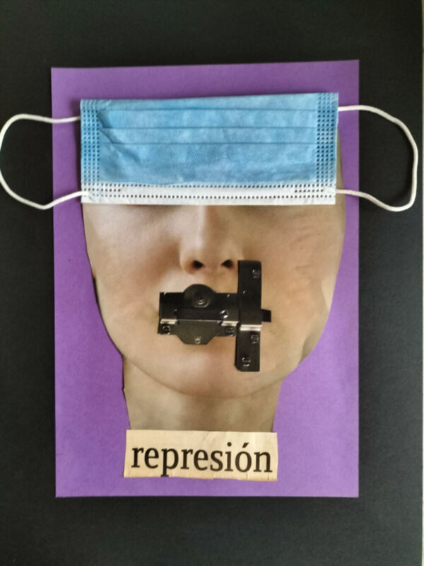 Realicé este collage con los ojos cerrados que forma parte de los que ya hice y escribí en su día sobre el COVID 19, porque no tenemos tapada sólo la boca, también los ojos y los oídos.