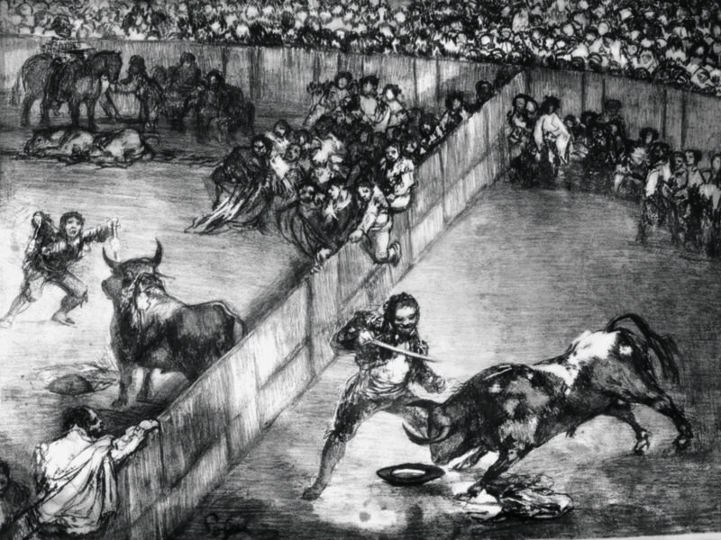 GOYA lo supo bien. Captó los tercios, las escenas en que Vida y Muerte se subliman al máximo. No sólo retrató a PEDRO y JOSÉ ROMERO, PEPE HILLO, MARIANA CEBALLOS ,una de las pocas mujeres toreras no sólo de su época; también banderilleros como JUANITO ALPAÑIZ o picaores como RENDÓN, personajes históricos imaginados como rejoneadores o lanceros como el emperador CARLOS V o el MORO GAZUL, sino pases, quites y quiebros   como el D. TANCREDO, las plazas dobles, los saltos alrededor de la vara larga,…pero la expectación, la tensión, el miedo, la atracción del abismo y la Gloria de una buena faena, siguen siendo las mismas.