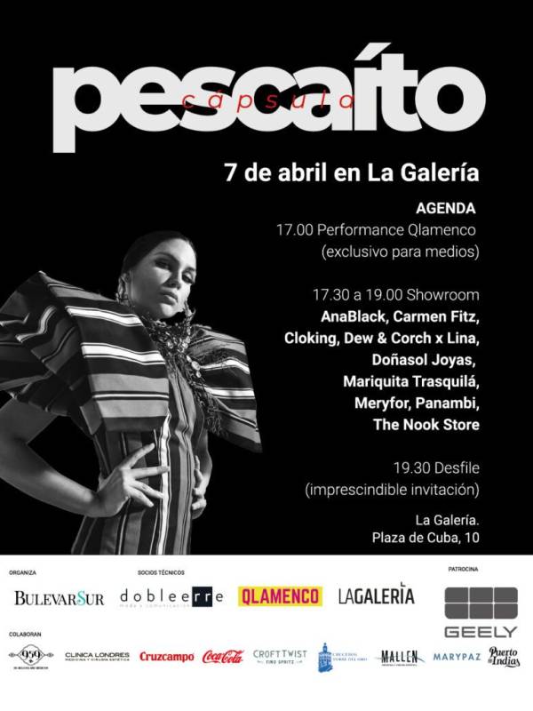 Sevilla, 7 de abril de 2026. La Asociación de Diseñadores Empresarios de Moda y Artesanía Flamenca de Andalucía (Qlamenco) ha presentado hoy en La Galería (Plaza de Cuba, 10), Cápsula Pescaíto, una propuesta concebida para la noche más emblemática de la Feria de Abril de Sevilla. Impulsado por Bulevar Sur y la Agencia de Moda y Comunicación Doble Erre, es un proyecto que reivindica una forma de vestir profundamente sevillana que forma parte de la identidad de la ciudad y que, hasta ahora, no había contado con un espacio propio. La cita acoge, además de la performance de Qlamenco, un showroom de diferentes marcas y un desfile.